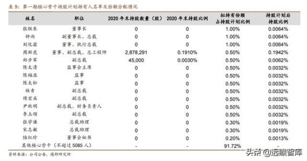 公司高管中,董事长张联东、副董事长及总裁钟雨、董事及执行总裁刘化霜拟持有的份额各占持股计划比例1.00%。