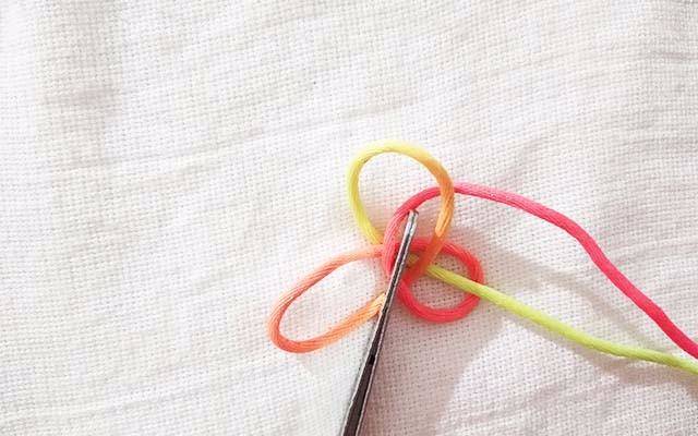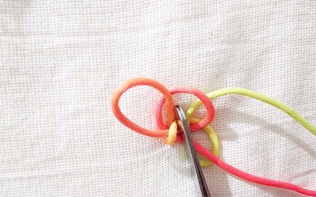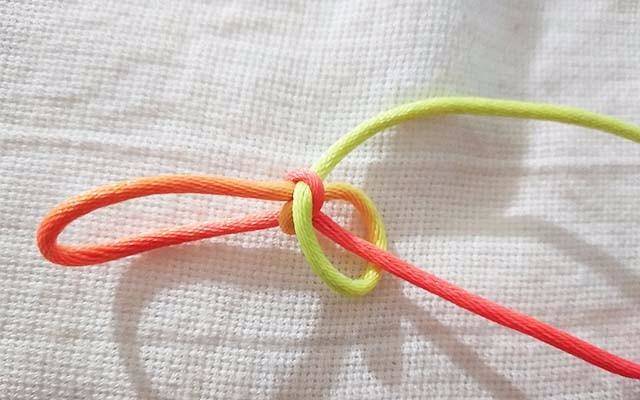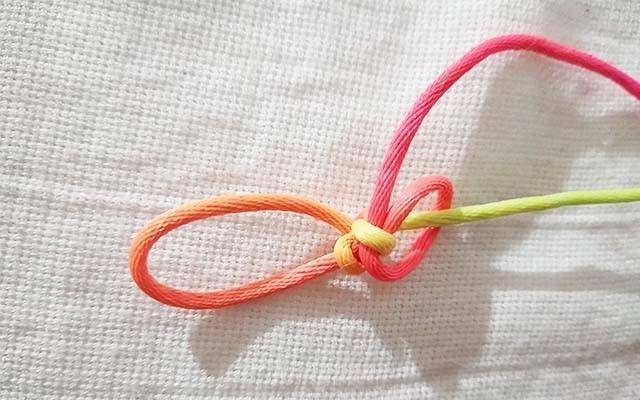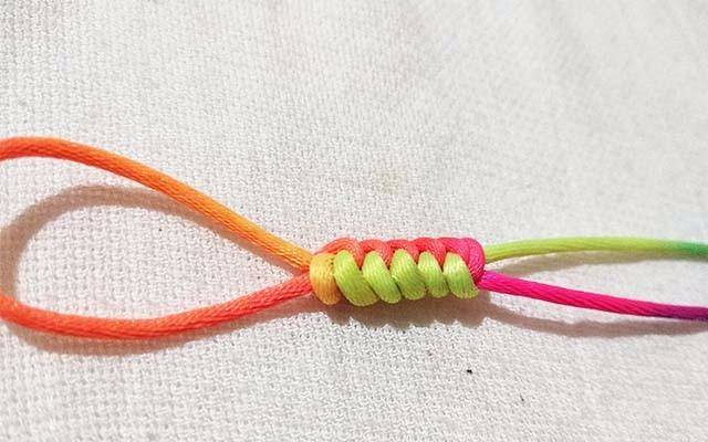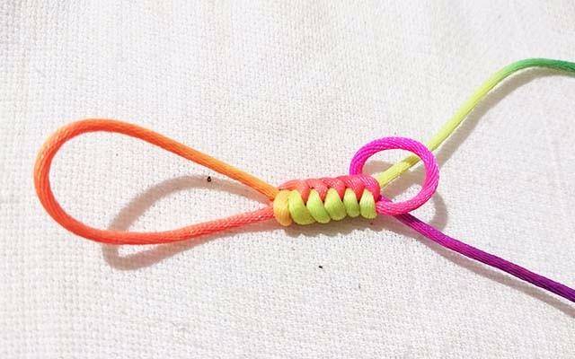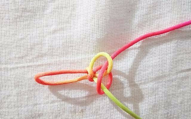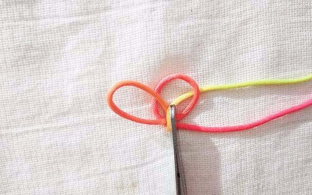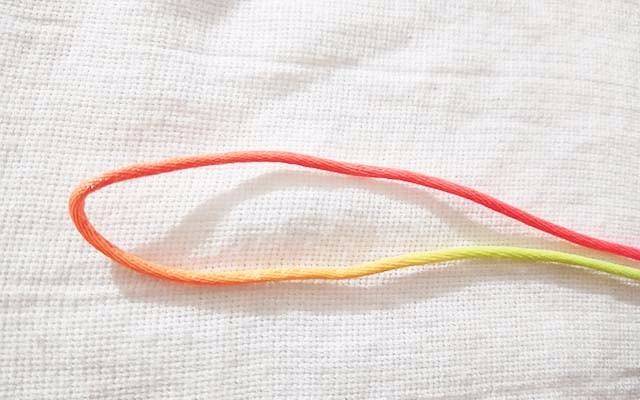 7.拉紧红色的线,这时候线已经固定不会散开了