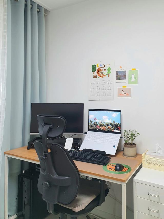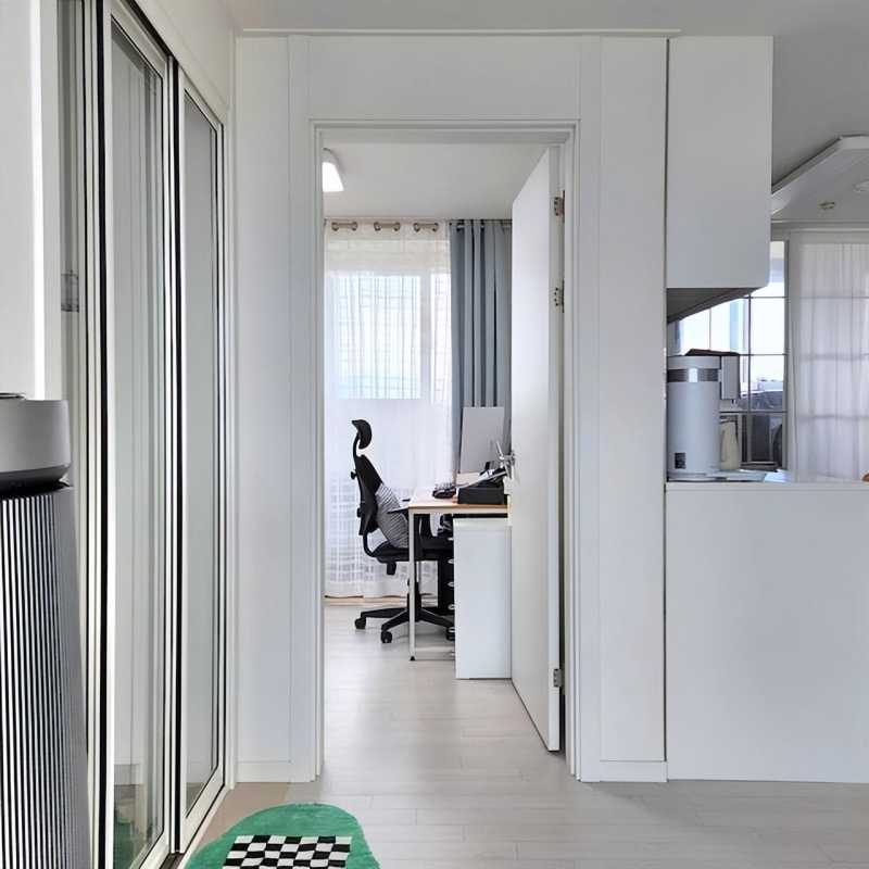 另一个房间打通了小阳台,改造成书房,成为整屋面积第二大的房间。虽然朝北,但采光也非常不错。