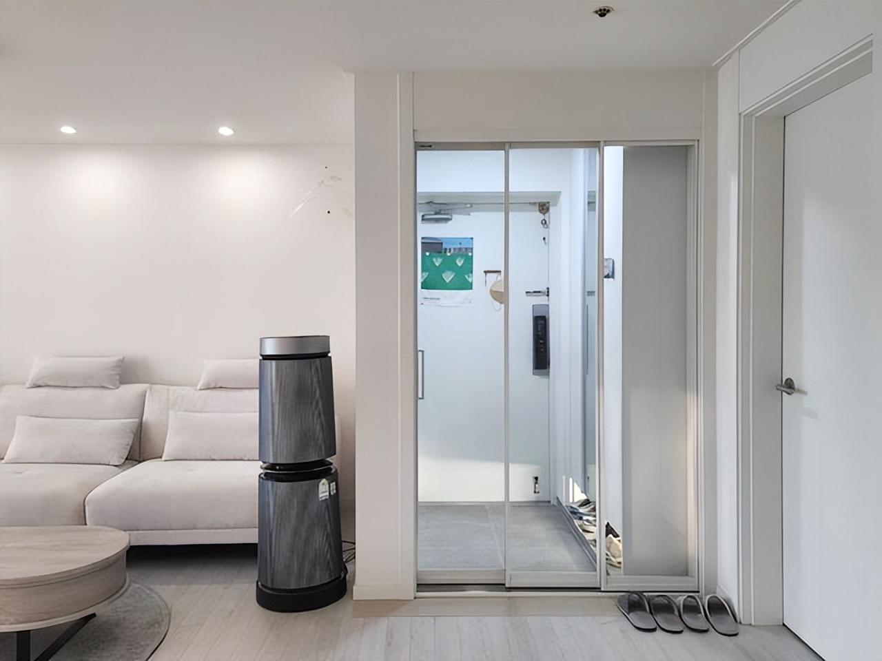 三联动推拉门的设计,起到了隔尘、降低噪音的作用,打扫卫生更方便,门外电梯井运作时屋内噪音也更小。