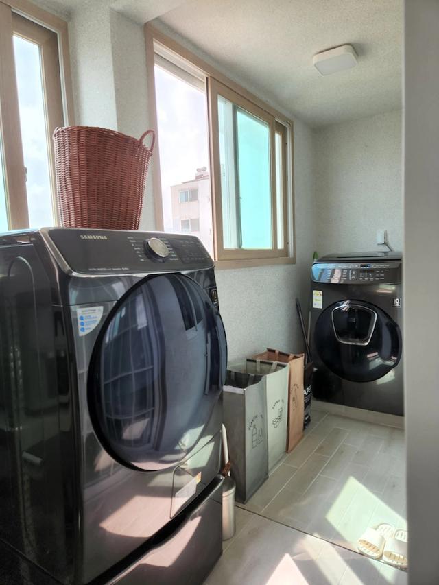 富余的空间则用来设置成洗衣房,配置了洗衣机和独立的烘干机。