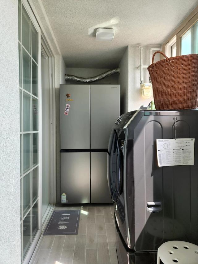 因为离厨房比较近,所以冰箱恰好可以放在右边的阳台。