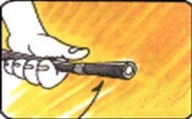 “喷”。往下按压阀,对准火焰喷射。