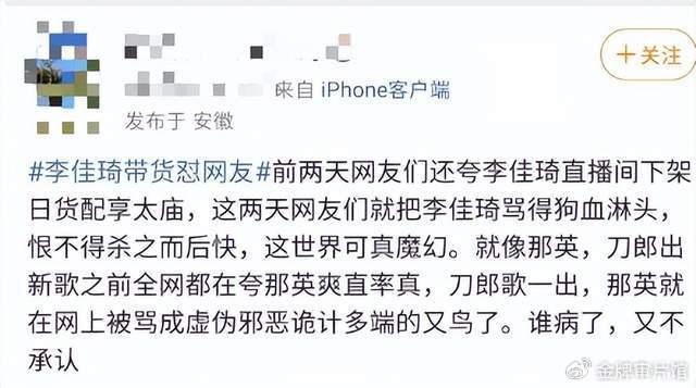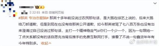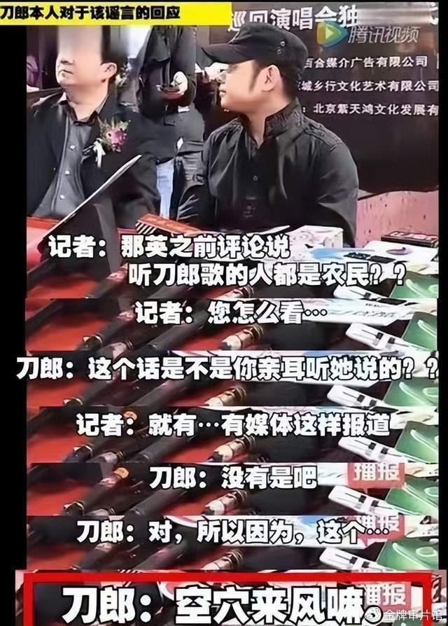首先刀郎事件,那英没说过“点刀郎的歌都是农民”这样的话,流传的类似言论是大鹏在综艺上加工过的。