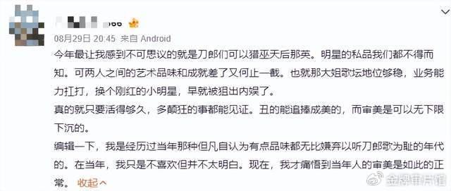 最轰动的应该是刀郎事件,刀郎一首《罗刹海市》疑似暗讽那英当年的打压事件,网友火速扒出那英似乎曾经说过“刀郎的歌不具备审美,只有农民才听他的歌”等言论。