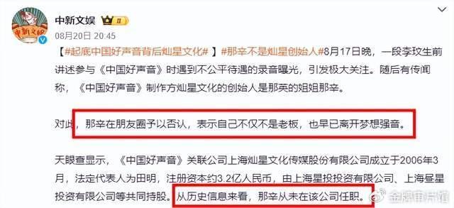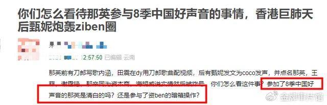 此外还传那英的姐姐那辛就是《好声音》的投资人,几件事情叠加在一起,那英俨然成了歌手界的黑社会大姐大。