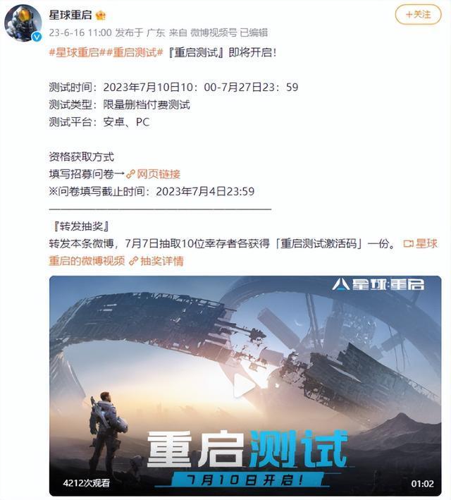 划重点:《星球重启》将于7月10日开启“重启测试”