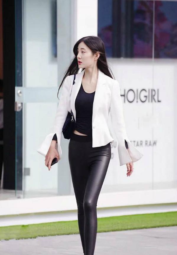 路人街拍:一身黑的性感“小腰精”,瑜伽裤+高跟鞋显腿长! 今天小编就为你带来一组很棒的路人街拍,一起来欣赏看看这位小姐姐的穿搭吧! 排扣装饰的短款...