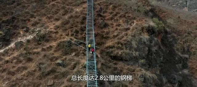 但悬崖峭壁上修不了公路,于是村民耗时7个月,用近6000根钢管修出了一条2.8公里的钢梯路。