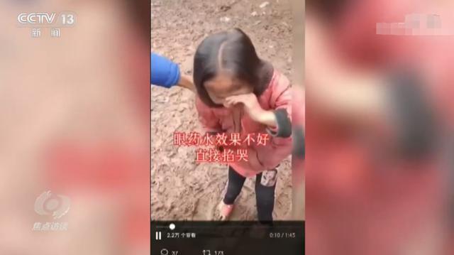 还有主播团队为了直播带货,想让小女孩流泪卖惨换取大家的同情与善意,就给孩子滴眼药水。因为效果不好,他们还直接上手掐哭孩子。