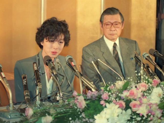 身着灰色西装、一头短发的明菜在200多名记者面前,“澄清”自杀与近藤无关,并针对此事件造成的影响向近藤和公众道歉。