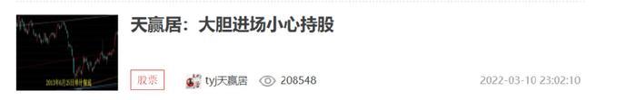 如今的“tyj天赢居”主战场在中金在线,号称中金在线第一圈主,粉丝1万,2006篇文章,12亿阅读。他的微博粉丝15W、微信公众号“天赢居”每篇文章阅读量约2W。