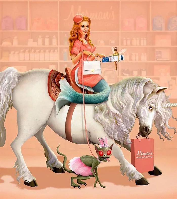 总之,杰夫·德鲁的讽刺性插画作品乍看让人有些看不懂,不知所云,但是这些作品的后劲儿还是很足的,画面看似很乱,但处处都是重点,处处都是细节,当细品之后,才能感受到艺术家真正的创作意图,以及想要表达的东西是什么。