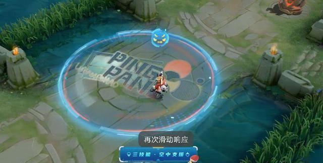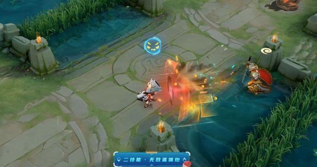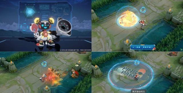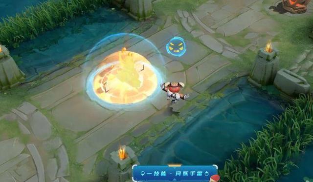 然后我们看一下它的一技能,它的释放一技能的时候,头上还会有一个小小的特价,那么他的一技能爆炸范围,大家觉得怎么样,我觉得是比较不错的。我总觉得他这个一技能爆炸,总共有好几个能量罩,不像其他的皮肤比较单一。