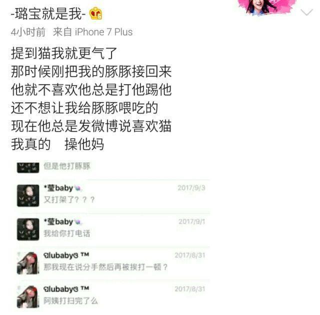 如果说前几条爆料只是证实了牛东文的渣男属性,那后面这几条爆料就可以说是人设崩塌了。翻开牛东文的微博可以发现他还是很喜欢小动物的,但是就王璐晒出的聊天记录却显示,牛东文不仅不喜欢小动物,还经常虐待王璐的宠物。