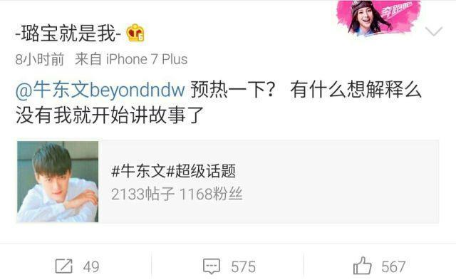 10月10日下午1点,SNH48前队长王璐发博并艾特了牛东文,并配文:预热一下,有什么想解释么,没有我就开始讲故事了。而牛东文适时未作出回应。