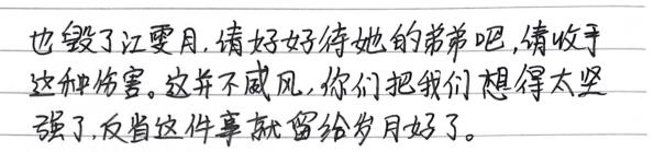 文中没有出现一个爸妈父母的字眼,全部用的“你们”,这是怎样的失望何绝望才能让一个花季少女不愿背负女儿的身份离开这个世界,明明她还关心着奶奶、弟弟,还记得还书和感谢老师,还想给小朋友买棒棒糖并注明了品牌,明明是个内心有爱的孩子啊!