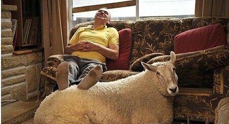 这只快活的小羊叫Nick Boing,喜欢跟当驾校教练的主人大卫去当地公园散步,然后窝在沙发上一起看电视。
