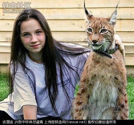 来自俄罗斯11岁的索菲亚,自从父母在2008年从动物庇护所领养宠物猞猁Zen后,就一直就和它一起生活 。
