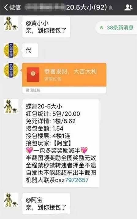 红包游戏群里通常都有数名同伙,他们分工明确,有的负责代发红包,有的负责建群和拉人进群,还有的假扮玩家。每当有人进群后,他们会给新拉进来的人一点小恩小惠,迷惑人性,但不久后就会开始使用“红包神器”作弊,让已经“玩上瘾”的人不断输钱。