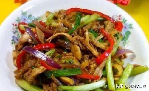 材料:三黄鸡半只(500克)、芹菜4根、香葱5根、洋葱半颗、新鲜红椒1颗、花椒10颗、大蒜4瓣、盐1/4小匙、鸡精1/4小匙、砂糖1/4小匙、生抽1又1/2大匙、老抽1小匙、料酒1大匙、芝麻香油1小匙; 做法 1.深锅里放入凉水,料酒1大匙,花椒10颗,生姜3片,放入半只鸡,加锅盖大火煮制,水开后熄火,加盖焖20分钟; 2.在焖鸡的过程中,将芹菜,香葱切成段,洋葱切丝,红椒切丝,大蒜,生姜切成片; 3.焖好的鸡用筷子插入大腿部分,可以轻松插入即表示熟了; 4.这时将鸡取出冲凉水,凉后用手撕成条状;炒锅放入油,放入大蒜,生姜炒出香味; 5.放入鸡丝煸炒1分钟,加入盐,鸡精,砂糖,生抽,老抽,料酒翻炒; 6.加入洋葱和红椒丝翻炒至软身;临出锅前再加入芹菜和香葱段;最后淋上少许香油即可出锅;