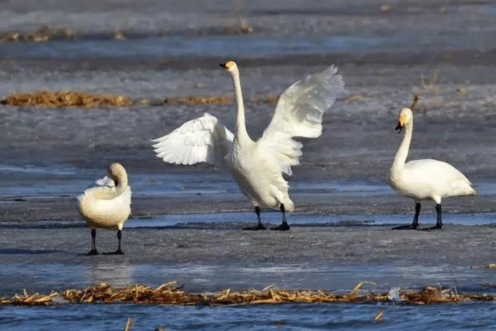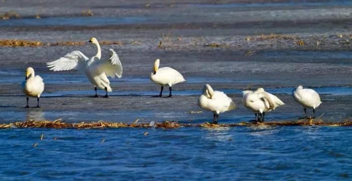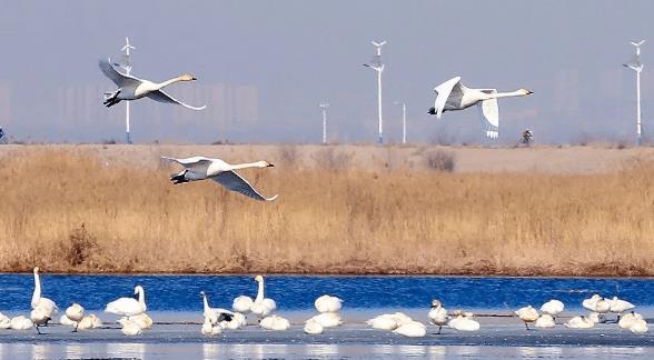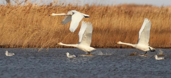 包头南海湿地是南迁候鸟作为休息和补充营养的中转站和栖息地,每年由此南迁的鸟类主要有大天鹅、小天鹅,此外还有白尾海雕、赤麻鸭、遗鸥,黑鹳等。