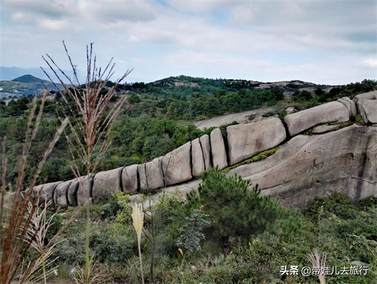 龙脊是大罗山最壮观的一个景点,莫过于龙脊了,龙脊是由一块块断截的岩石相连而成,蜿蜒的巨大身躯,宛如巨龙的脊柱化石,因其形状犹如巨龙的龙脊骨,故称之龙脊。龙脊由23块形状相似的岩石组成,其长约40米,宽约5米,最高约8米,属于花岗岩地貌,典型的火山岩构造,其形成距今1.2亿年左右。大自然鬼斧神工可见一斑。