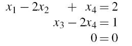 3.无穷多的解。当系统是一致的并且至少有一个非主元变量时,就会发生这种情况,因此至少有一个参数。