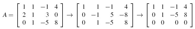 这是行阶梯形,我们通过把第二行加到第一行来把它化简(只能从下往上运算):