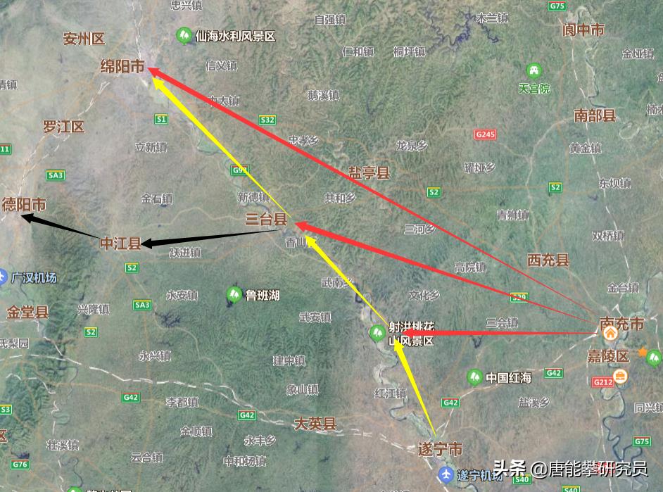 由于南泸铁路官方在推进,静等消息即可。下面研究一下南充到绵阳的选线方案。