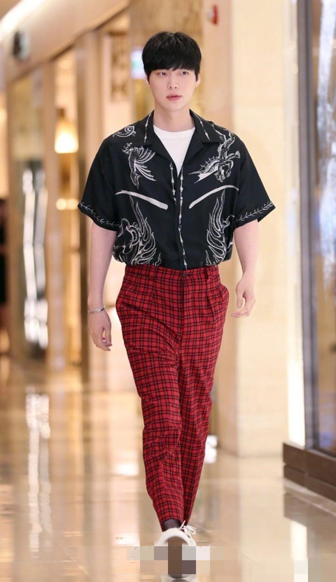大多数的明星都会因为某些事情前程滞留,安宰贤也是这样。一身黑色的另类刺绣短款衬衫内搭白色的基础t,下身一条显眼的红色格子裤,安宰贤可真敢穿。黑色的衬衫上另类图案刺绣让安宰贤有种低调但是又很有自己想法的感觉。衬衫叠穿在现在也成了很流行的穿法,如果下身驾驭不了显眼的红色格子裤,搭配条黑色破洞牛仔裤,或者浅色的牛仔裤都是不同的潮流风格。
