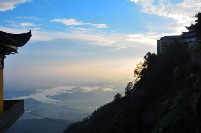 注:横岗山在湖北省蕲春、武穴交界处。重峦叠嶂,宛如龙卧其巅,故名“横岗”。最高峰815米,素有鄂东屏嶂之称,横岗山茂林修竹,郁郁葱葱,隋唐开山,寺庙林立,香烟缭绕,景点多而集中,横岗山耸翠为古十景之一。横岗山风景独特,景点繁多,许多景观都有美丽的传说,并留下了佛教的印迹。“龟驮经书”石就恰似一只神龟背驮一箱经书。相传它从遥远的西域送经而来,路上历经磨难,到横岗便涅槃成石。梅川水库位于横岗山脚下,两边青山横绕,山上树木苍青翠绿,绿草茵茵。有千年古槐、古松、古柏,有奇树奇花200多种,还有各种飞禽走兽100多种类.湖中有一小岛,长年绿树掩荫,鸟语花香,人称'鸟的天堂"、'游客的乐园". 登上横岗山,从山顶上远望梅川水库,远处水道千曲百折,奔向四方,夕阳时波光粼粼,别有一翻景象。