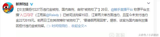 这件事情被多家知名媒体转载,并称其为首例因拒付平台违约金而被拘留的女主播。
