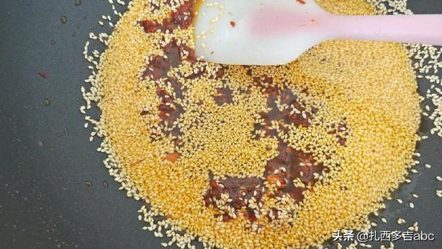 5、最后放入适量的白芝麻,白糖,花椒油,没有花椒油可以放花椒粉