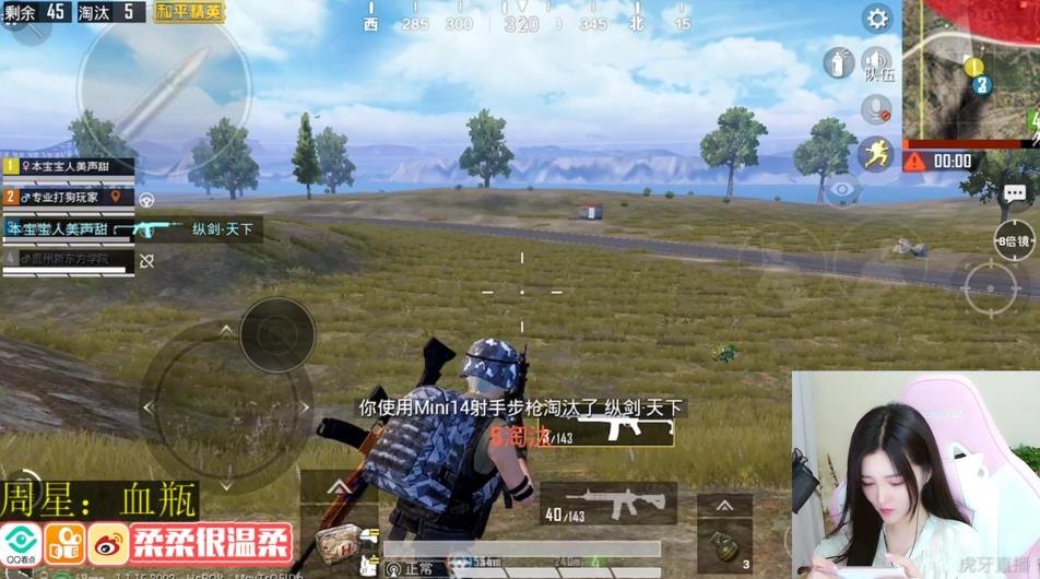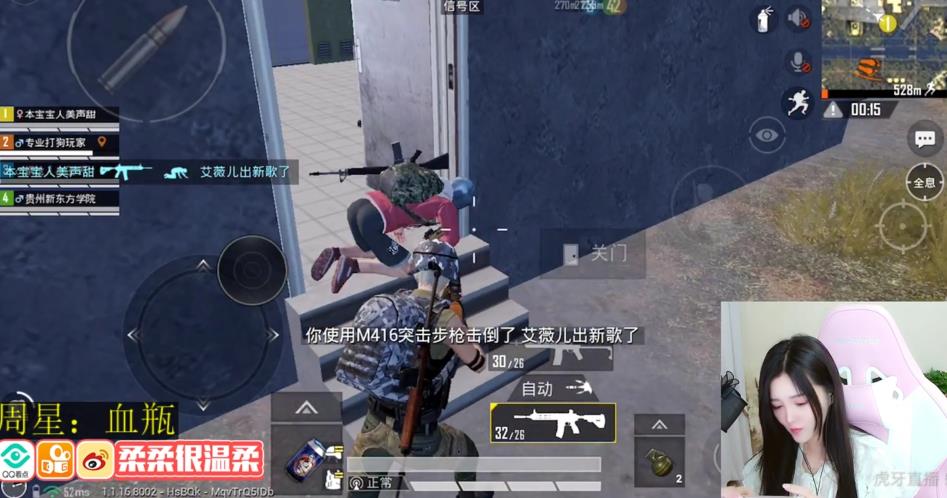 虽然说虎牙柔柔比较喜欢匹配路人,以一个萌妹子的身份去同路人交流也成为一个亮点。今天就是说一下关于虎牙柔柔的一场比赛。虽然说刚开服的和平精英大神比较多,吃鸡没吃成,但是技术的操作却已经证明她的实力了。