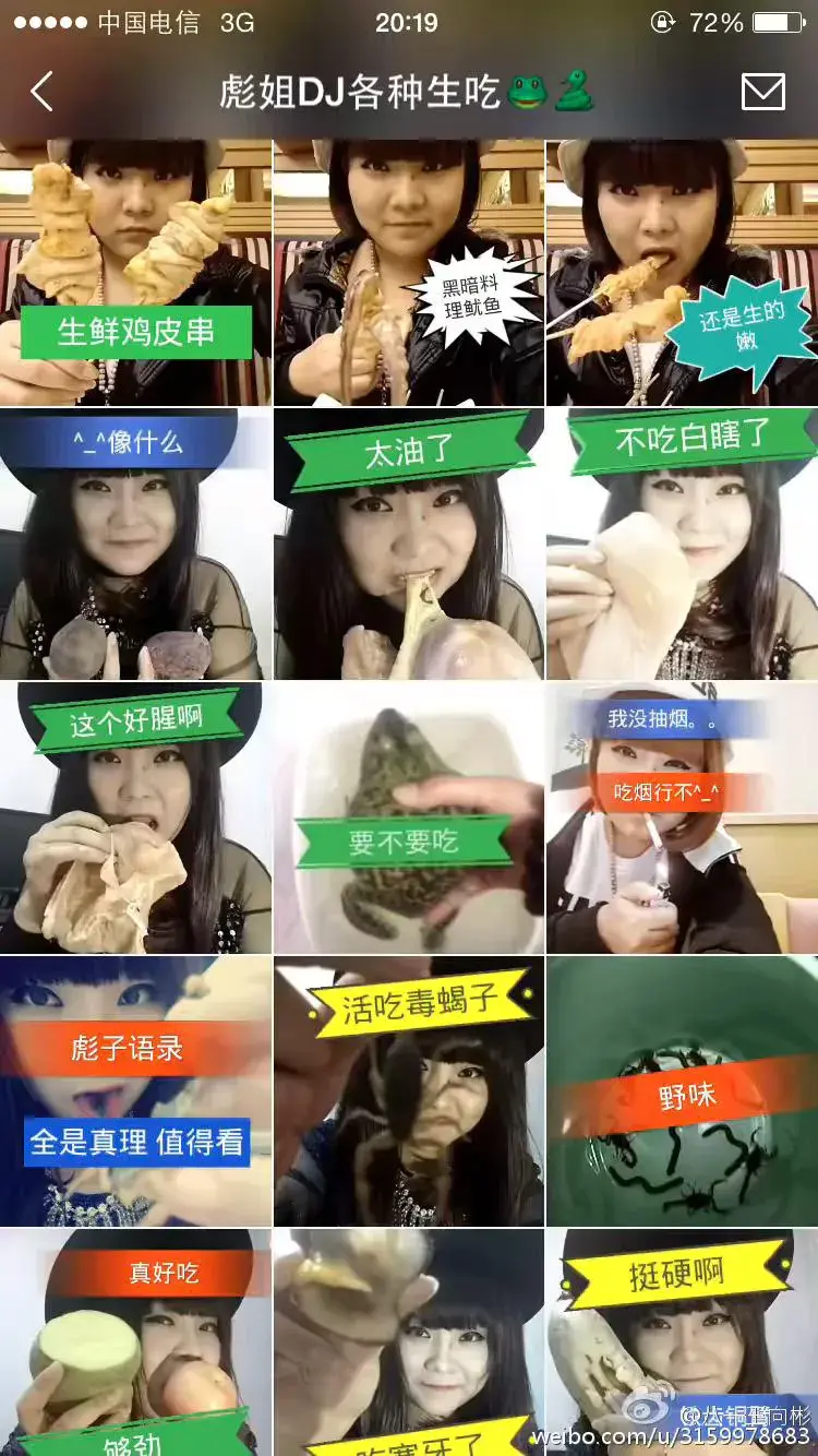 一:彪姐,自己主页就是这样写的挑战生吃各种不敢吃的东西,在里面最让人敬佩的就是生吃大蝎子,大口吃黄油……我们这些恶趣味爱好者看着心里就犯冲,她的嘴真不是常人的嘴啊!