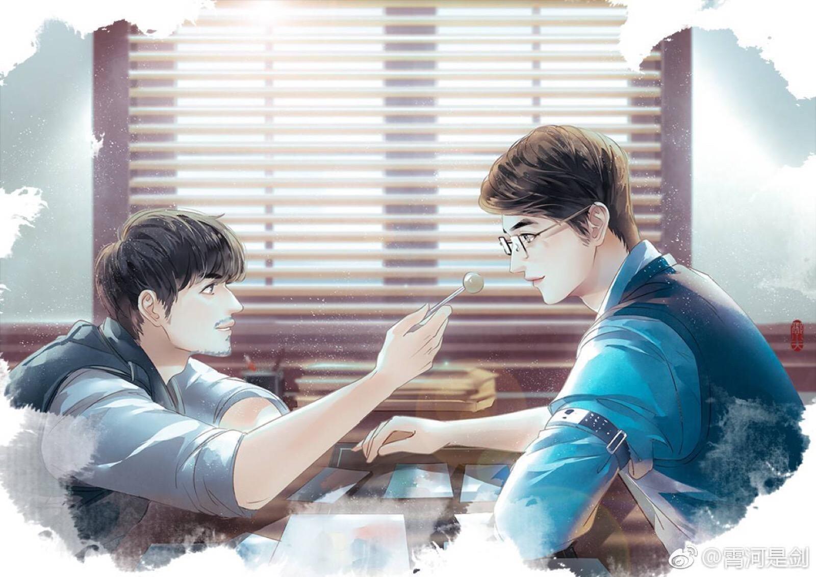 巍巍和小澜孩坐在一起,沐浴在清新温暖的阳光中。记得当时沈巍说:好喜欢晒太阳。其实,很希望这个是剧版《镇魂》最后的镜头。