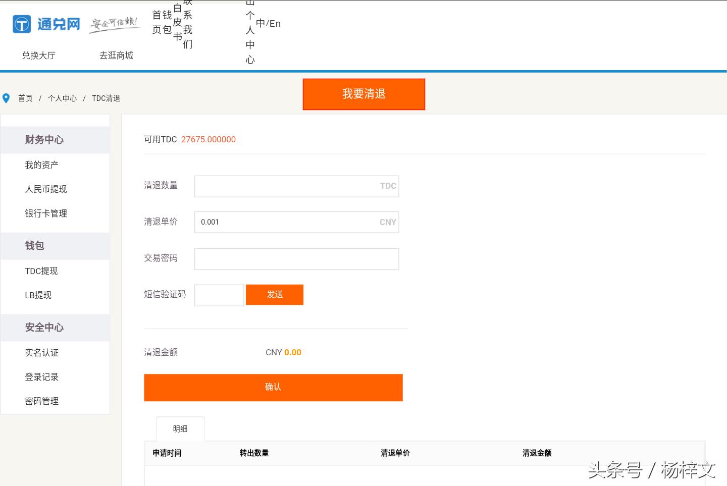 发现平台出现了“我要清退”的选项,点开试了一下,我去~竟然安0.001厘的价格清退,当时我2000元买了27675个币,以0.001厘清的话只能给我退27.675元。
