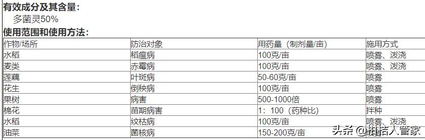 在我国,有一个流行了50多年,深受种植户和养花达人喜爱的杀菌剂,它就是多菌灵。多菌灵,具有高效、低毒、广谱、内吸性杀菌,属于苯并咪唑类杀菌剂,对多种作物由真菌引起的病害,具有保护和治疗作用,可用于叶面喷雾、种子处理和土壤处理等。