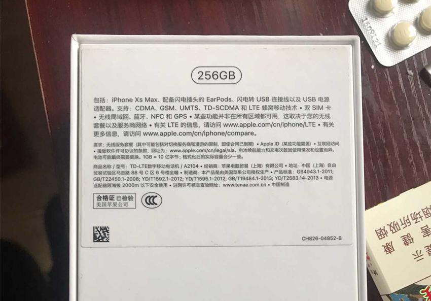 手中这台是美版苹果手机,型号为iPhone XS Max,容量256GB,带有原包装,以及全新的配件,总共价格是7000元,比国行的9000多元便宜不少,但是确实有锁的美版手机。