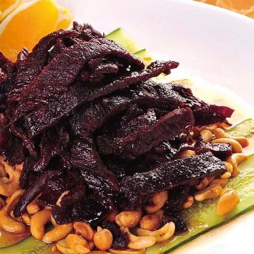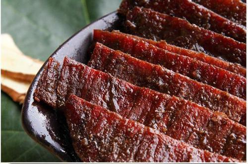 玉林牛巴”是玉林传统风味名吃,它是用黄牛臀部肉(俗称打棒肉)为主料,肉质细而有嚼劲,吃后满口生香,堪称地方一绝。