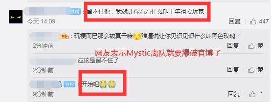 WE官宣Mystic离队成为自由人 网友:留不住就等祖安玩家的问候吧
