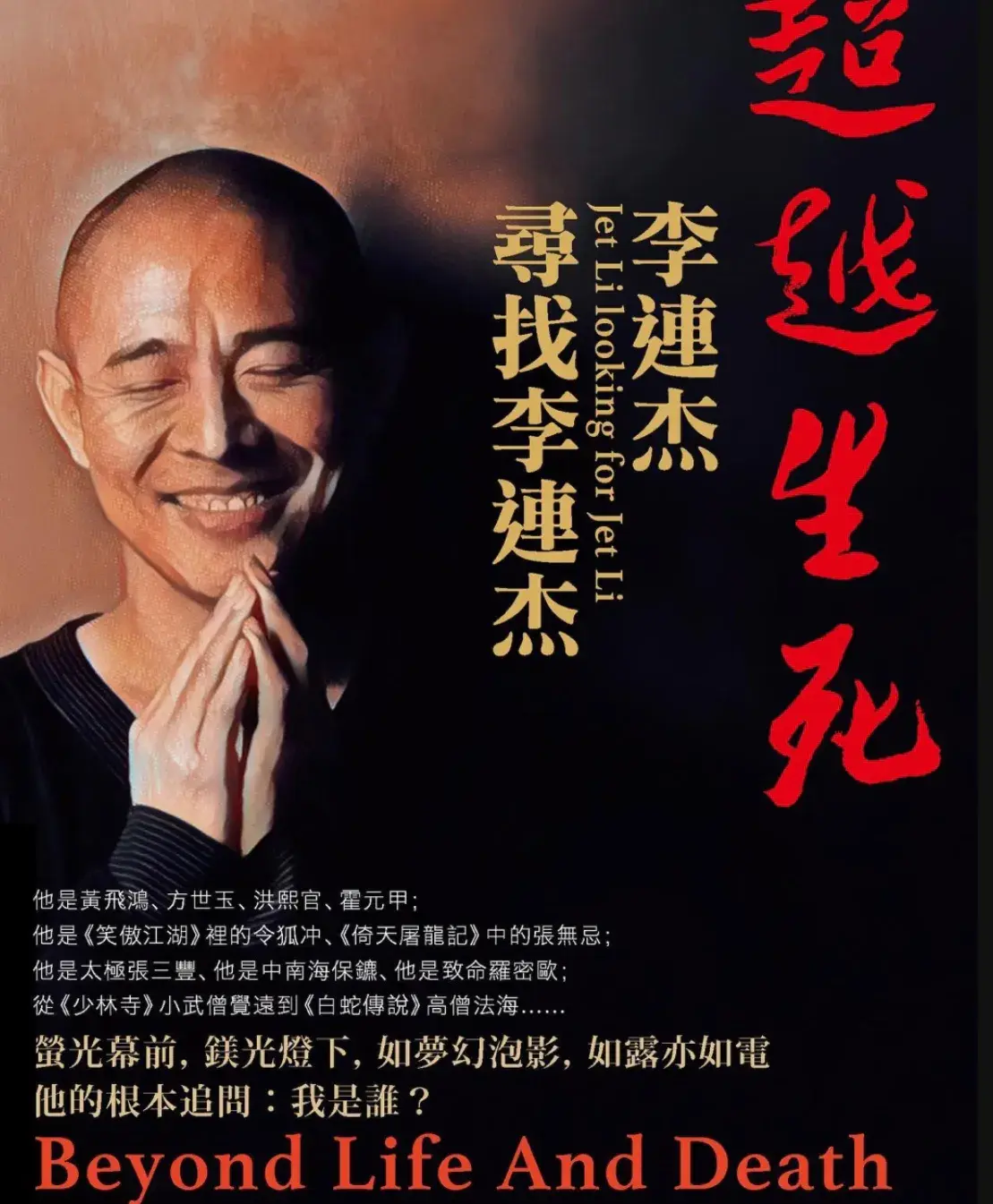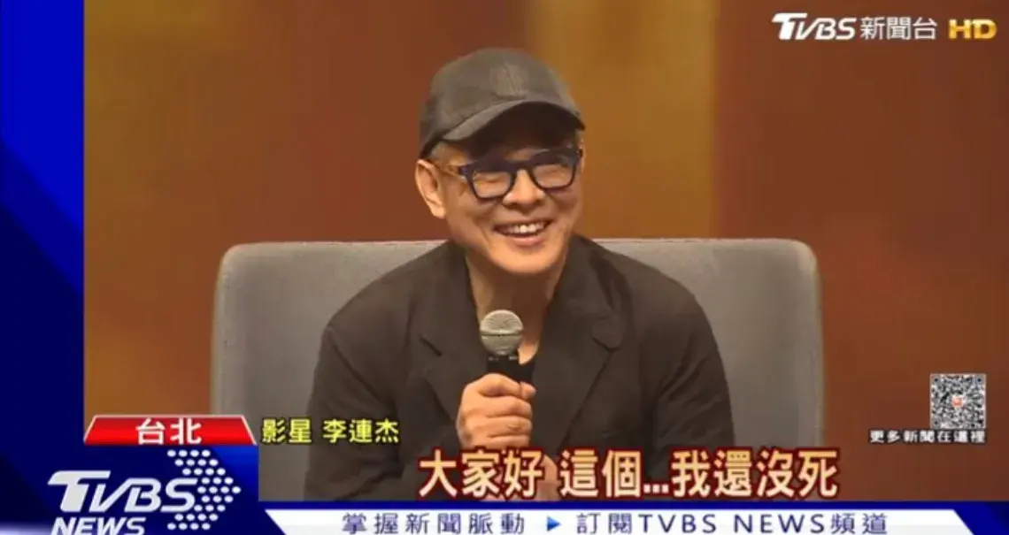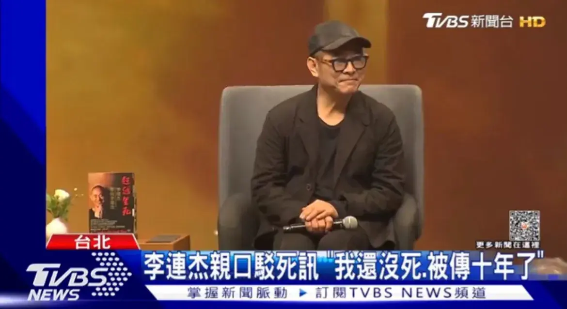 最近,李连杰出现在台湾,为新书《超越生死:李连杰寻找李连杰》出席讲座。他头戴黑色cap帽,身穿黑衣,精神状态良好。李连杰首先向大家打招呼说:“我还没死!之前还在大陆有媒体造谣说我死了,十年了,有人说我死了那么多次?怎么还没死!”他还透露这次来台主要想分享生命议题,表示很荣幸和感恩。
