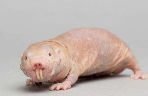 非洲裸克分子鼠亦称作裸鼹鼠,属冷血动物。全身无毛,牙齿外突,状如香肠,是世界上最丑陋的动物之一,其眼睛非常小,视力几乎退化,靠敏感触觉辨别方向。现代科学家通过研究发现,裸鼹鼠的寿命十分长,约达三十年左右,是鼠类物种里的寿星公,另外它们还免疫疼痛,对外界的打击毫无反应。