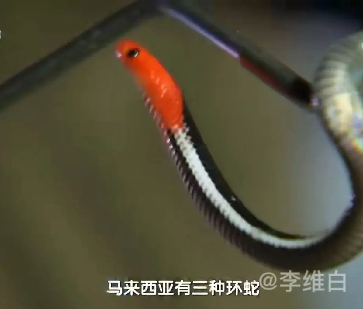 马来西亚有三种环蛇,其中红头环蛇是其中最漂亮最稀有的一种。它属于眼镜蛇科环蛇属动物。