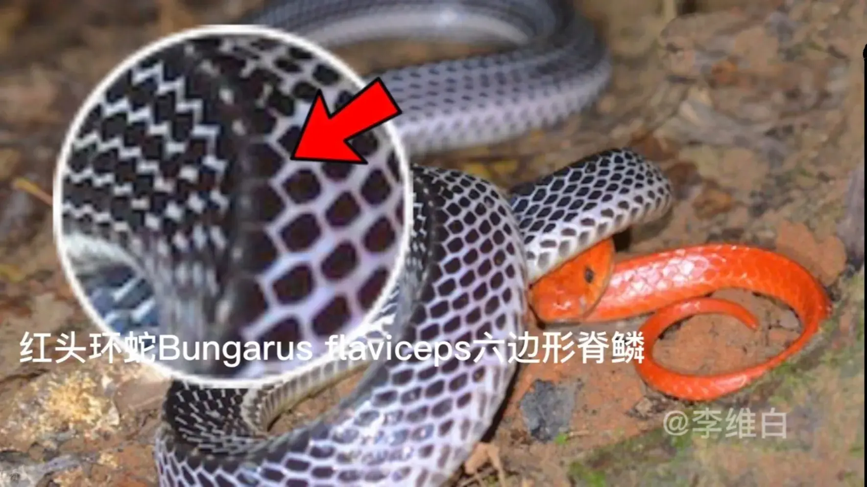 主要特征就是它的脊鳞比两侧的背鳞明显要扩大一些,呈六边形,和金环蛇银环蛇的背鳞十分相似。