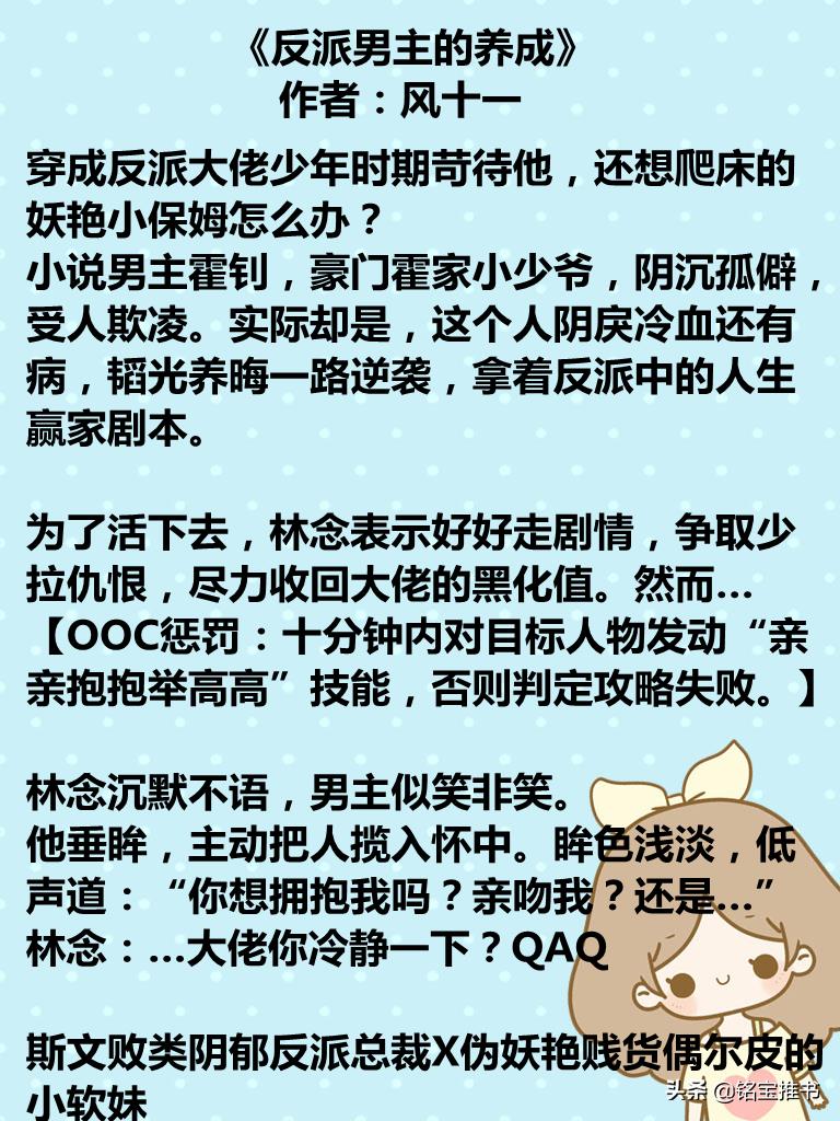大家好,欢迎来到铭宝推书,今天给大家推荐四本好看的救赎文,女主救赎偏执反派的治愈系小甜文,每本都很好看。
