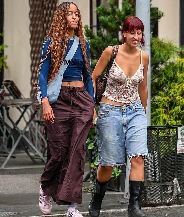 玛丽亚挽住一位中性打扮的朋友的胳膊,自信地走在街头,看到镜头时也毫不躲闪。从容貌上看,玛丽亚非常像她的前总统父亲,眉眼间颇有相似之处,而且在身形方面也相似,都是高高瘦瘦的。