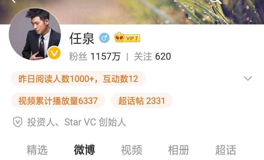 很多人都知道任泉自从从演员转变商人之后就很少曝光在大众面前,而他的社交平台账号也从演员变成了投资人。