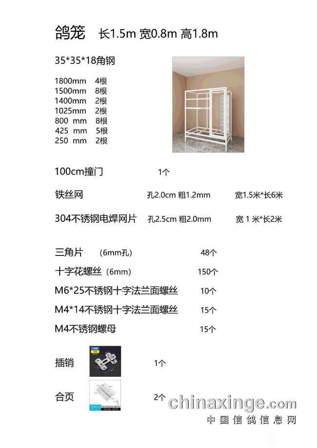 鸽友 新建小型鸽棚 附设计图、材料清单